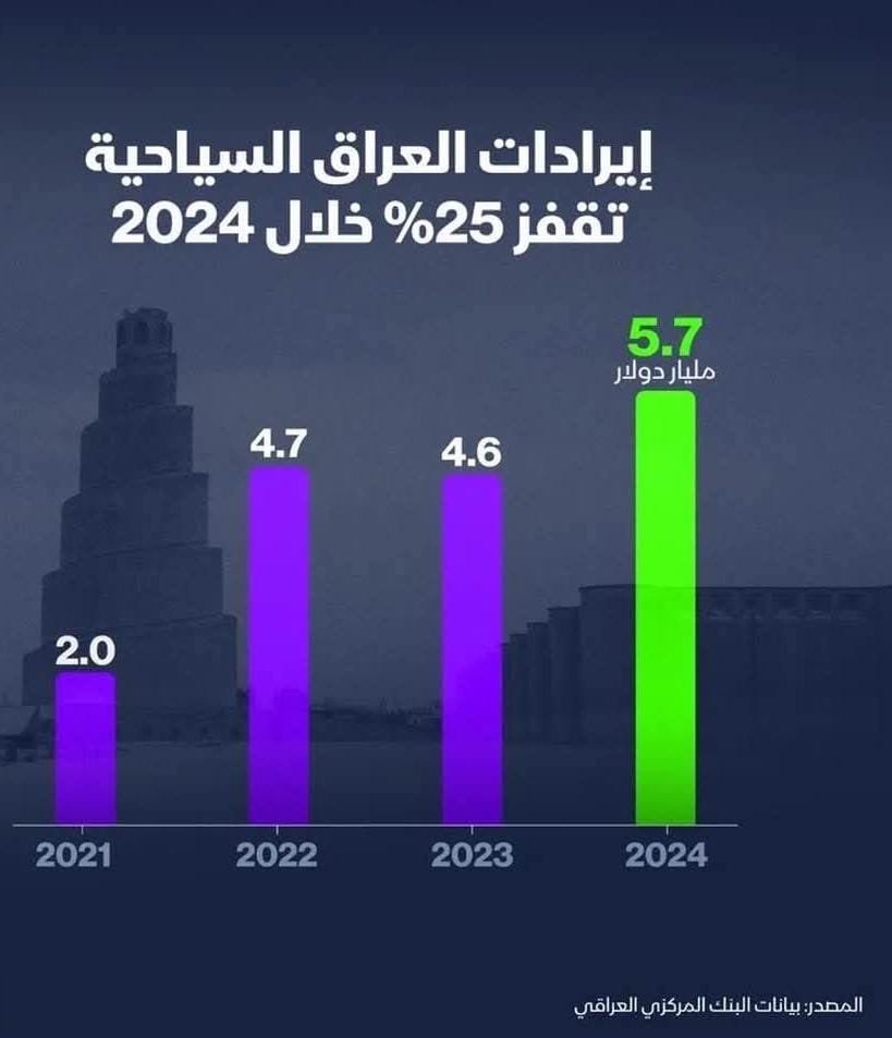 19082 : العراق يحقق قفزة في إيرادات السياحة ويصعد للمرتبة السابعة عربيًا